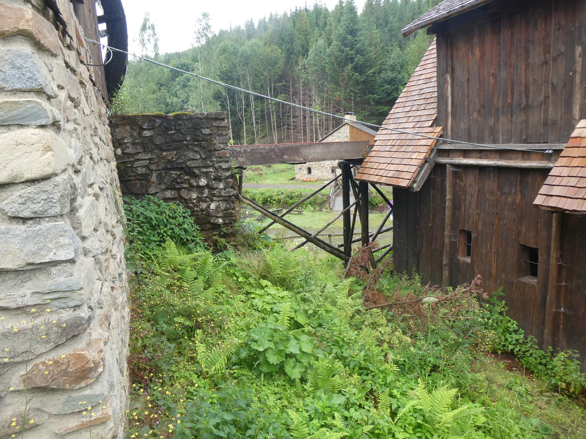 Zlatorudné mlýny, v horním se drtila ruda a v dolním se mlela, aby ji pak mohli vypalovat v tavící peci.