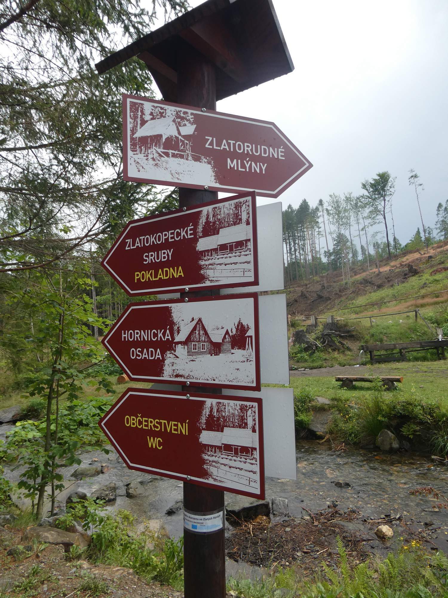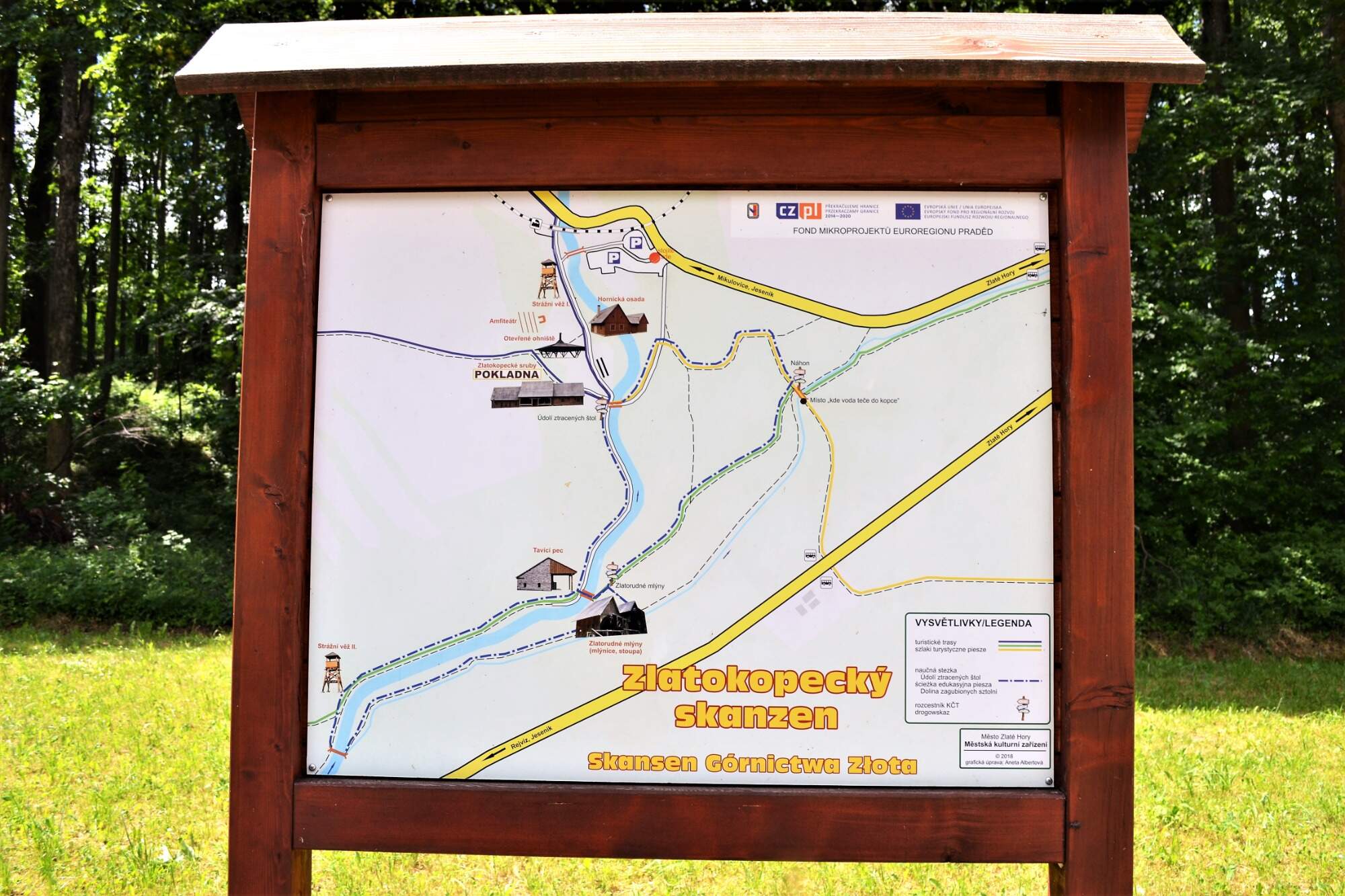 Skanzenů máme v republice několik, ale ten zlatohorský vám v místě zvaném Údolí ztracených štol nabídne k prohlídce repliku dobových zlatorudných mlýnů ze 14. století. Byly to časy největší slávy dobývání zlata ve zdejším kraji. Ve skutečnosti se dávná těžba a hlavně zpracování zlata odehrávalo blíže dnešního města, ale tam by dnes nebylo na takovou turistickou atrakci místo. Musíme zajet na okraj dnešních Ondřejovic, kde je parkoviště a pak už do skanzenu po rovině zajdeme.