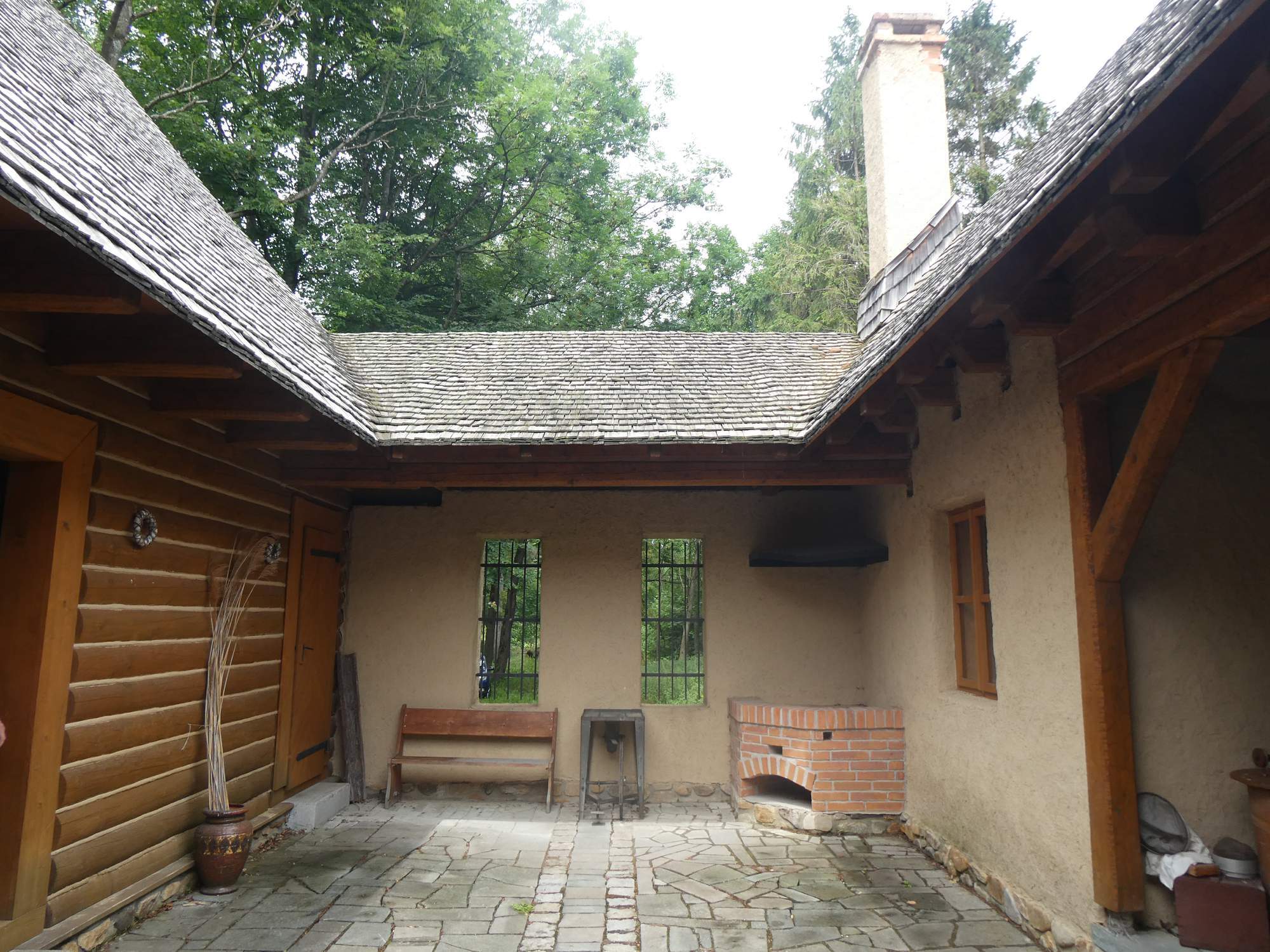 Všimněte si, že pravá polovina štítu je z nového dřeva. Dole poznáte, proč.
