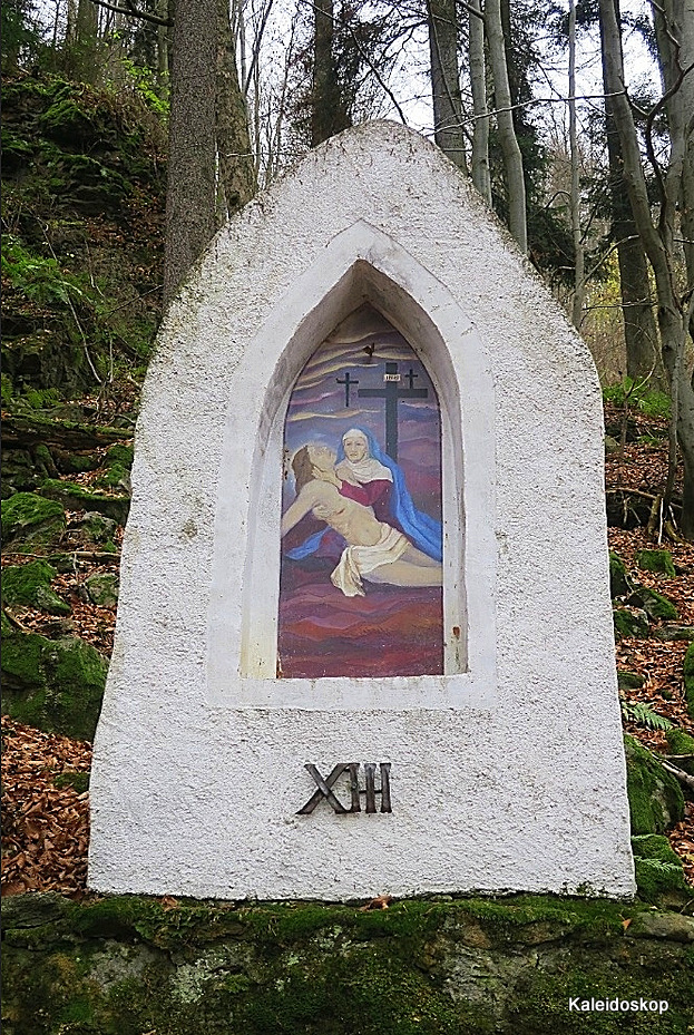 Na svahu Libína je i tato křížová cesta, některá zastavení zachycují snímky.